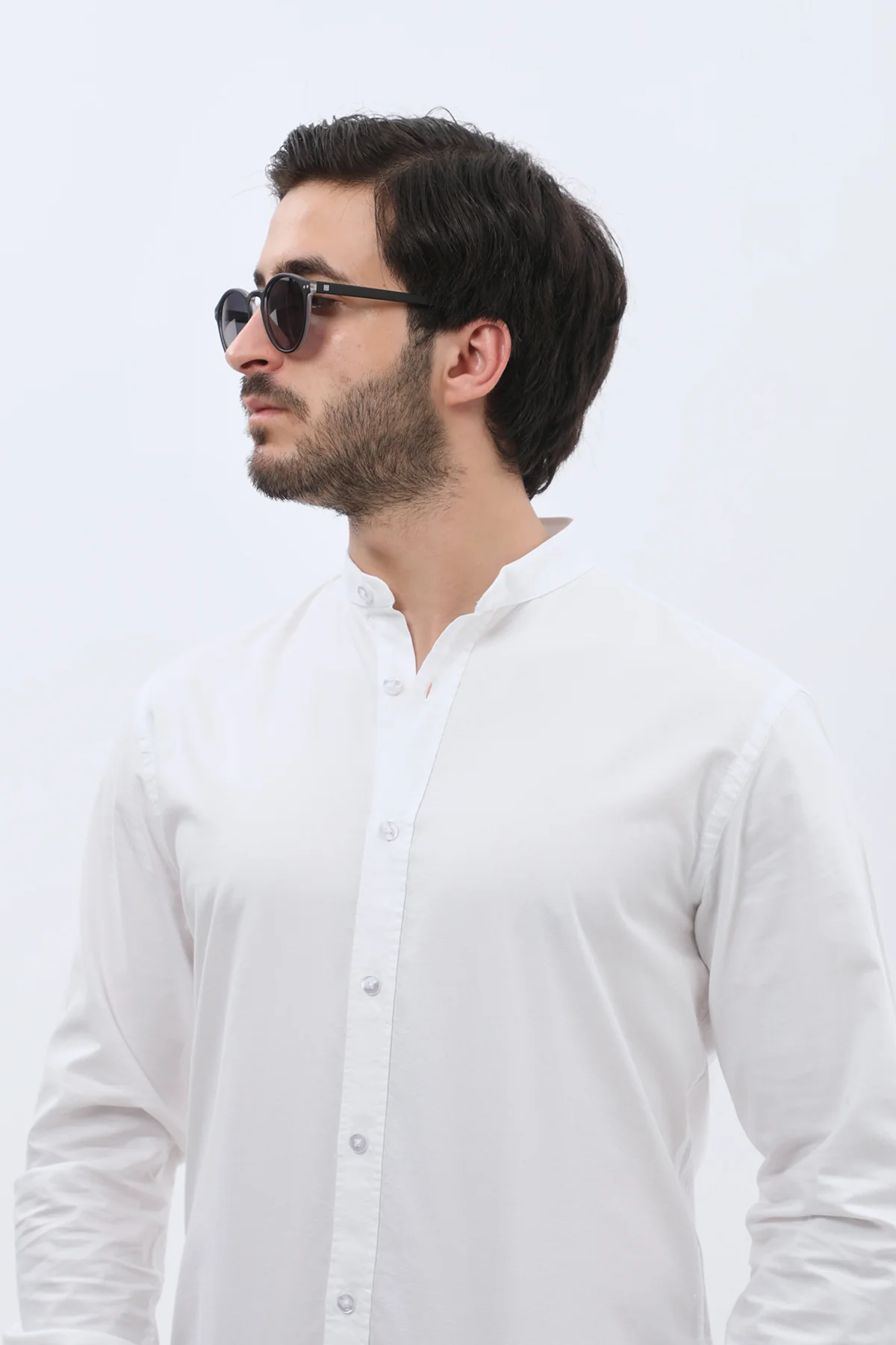 قميص أكسفورد بقبة ماندارين من SHIRTSPRO - لون أبيض