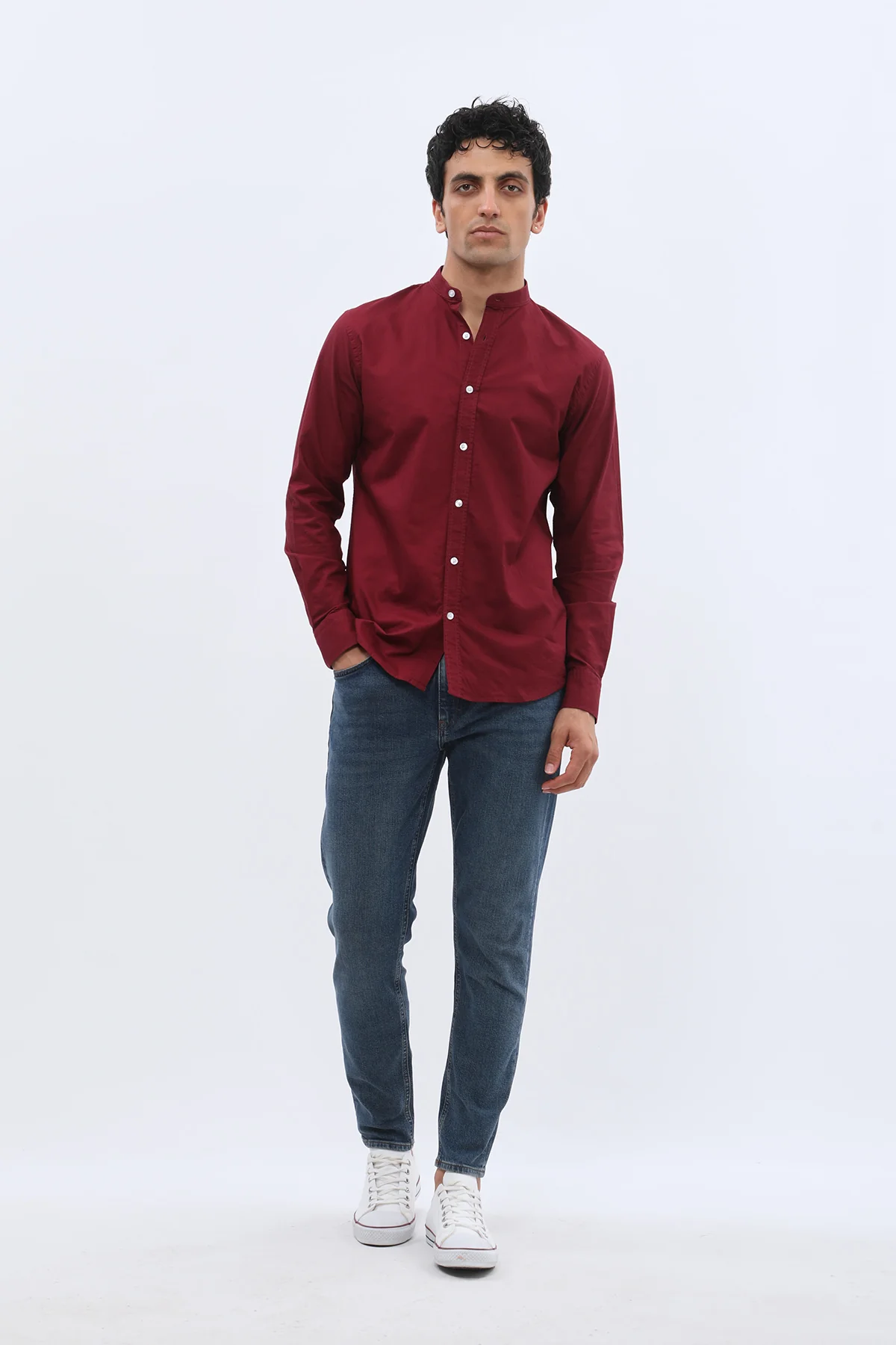 قميص أكسفورد بقبة ماندارين من SHIRTSPRO - أحمر بورجوندي